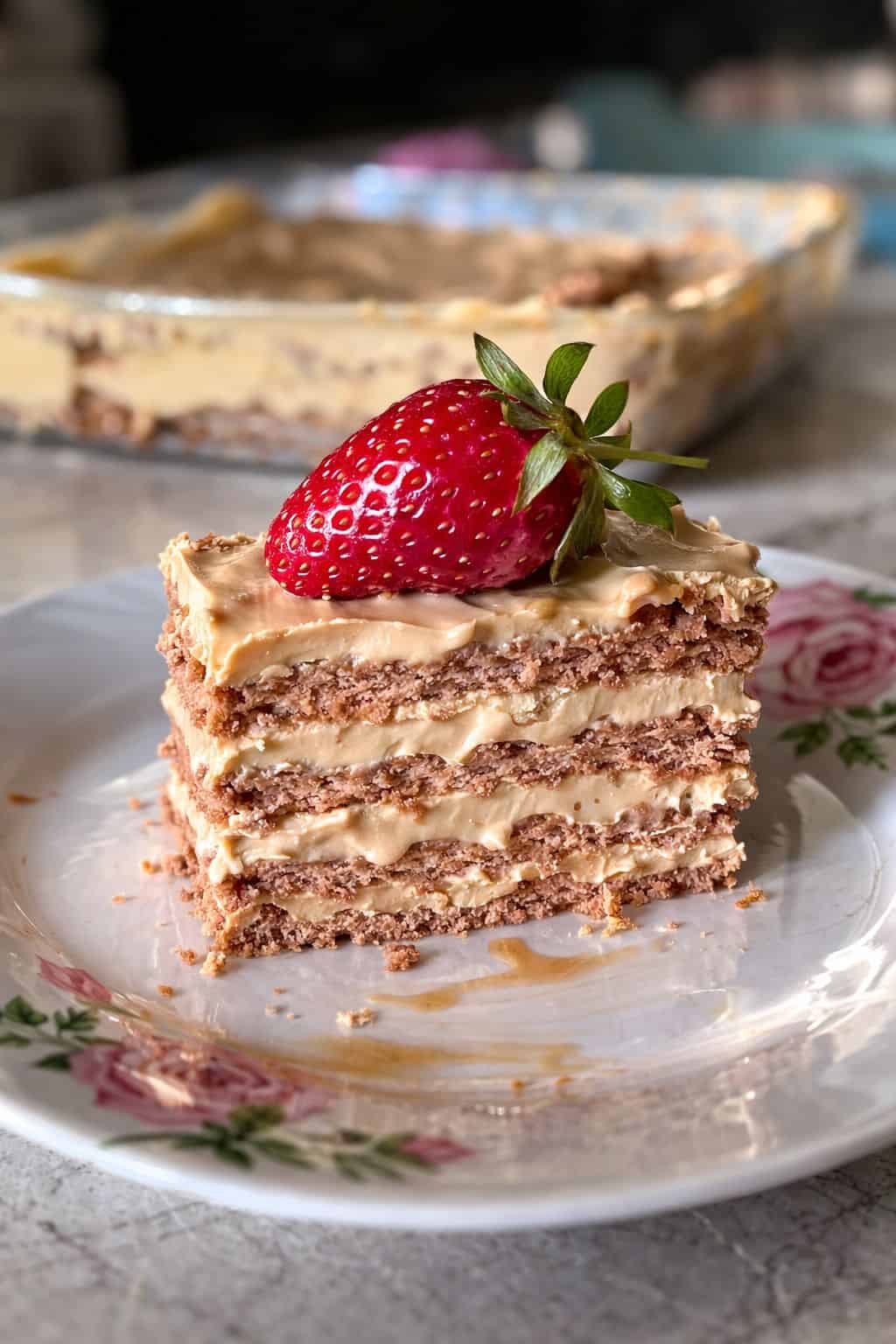 עוגת הביסקוויטים האייקונית מארגנטינה – ללא אפייה, רכה וקרמית, עם ריבת חלב וגבינת שמנת.